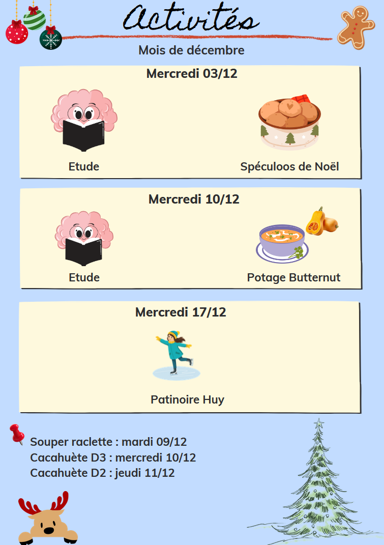 Nous proposons à nos internes des activités le mercredi après-midi, mais également en soirée.